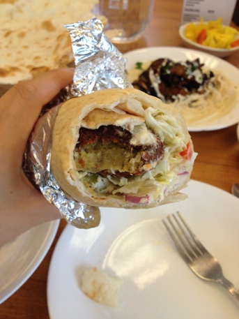 For my main, I went with the Falafel Sandwich ($4.50 on a pita/$5.99 on laffa). I opted for the laffa, of course. I loved the laffa – it tasted similar to naan and has a softer, chewier texture compared to pita bread.